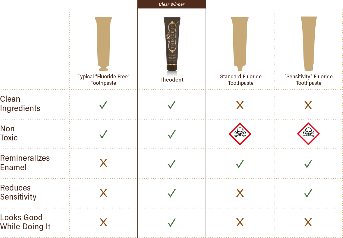 No compromises, just clean and effective oral care. Theodent toothpaste is the only option that rapidly remineralizes enamel, reduces sensitivity, and contains non-toxic, clean ingredients.
